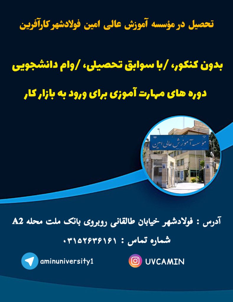 با موسسه آموزش عالی امین، آیندهات را بساز؛ جایی که دانش به مهارت تبدیل میشود. مؤسسه آموزش عالی امین فولادشهر کارآفرین ، با مجوز رسمی از وزارت علوم، تحقیقات و فناوری، یکی از مراکز علمی پویا و معتبر در استان ادامه مطلب